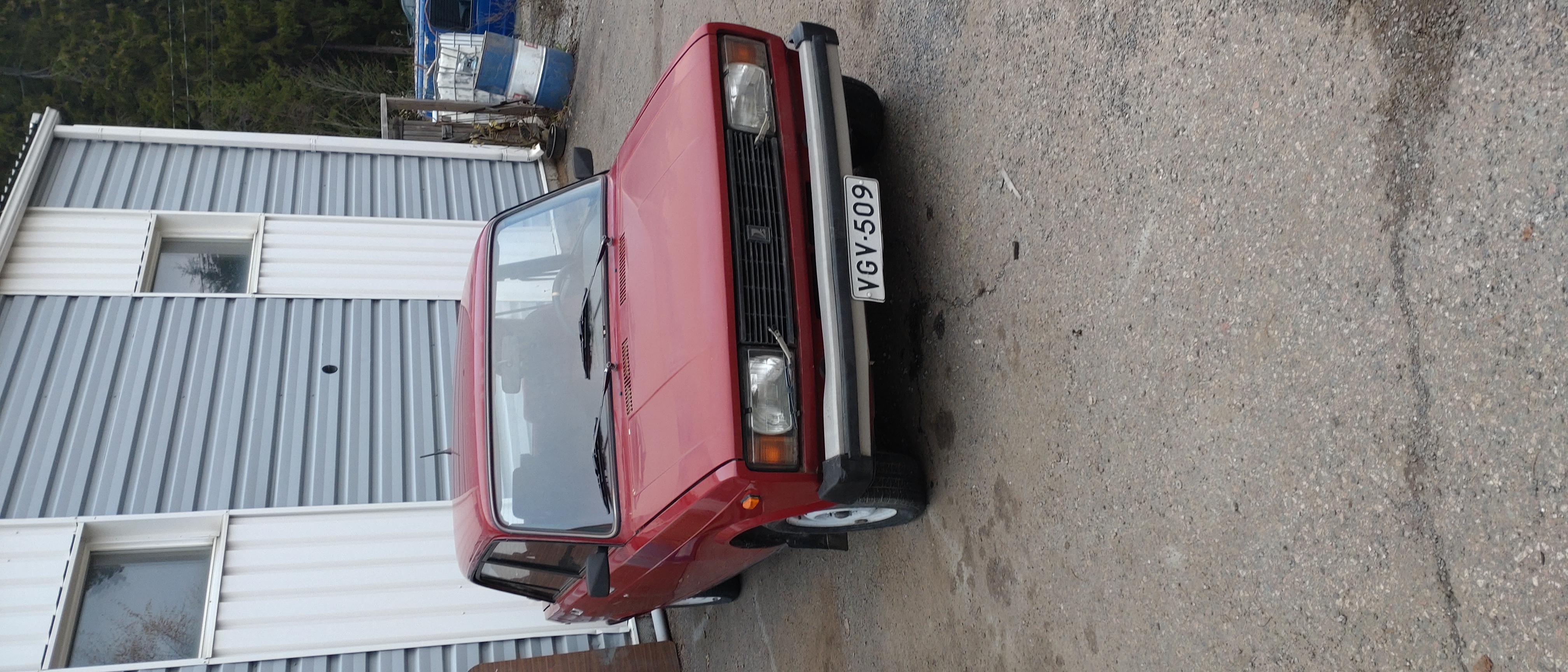 Kuva "Suurin osa kalustosta on ulkotiloissa olosuhteiden pakosta, mutta se lohduttaa vähän kun kalusto huononee kuitenkin hitaammin kuin prässissä" (tai tuningissa)
