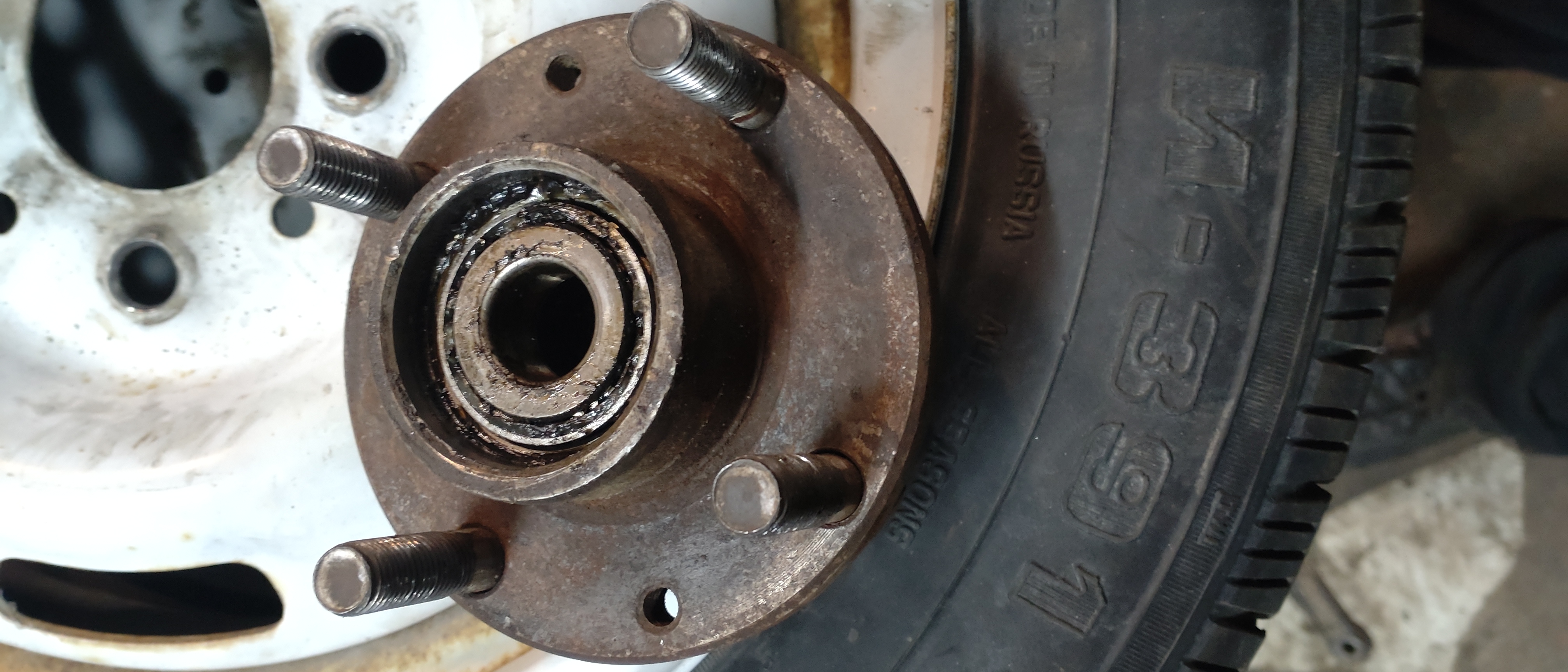 Vietin eilen työntäyteisen 13 tunnin päivän Ladan parissa. Nyt edellisen viestin vikalistasta on korjattu x:llä merkityt asiat. Oikeaan etunapaan oli joku laittanut pinnapultit ja hitsannut(!) ne navan takapuolelle kiinni. Yksi pultti heilui jo paikallaan, eli hitsaus on pettänyt. Laitoin tuon tilalle uuden navan ja oikeat pultit, jotta pyörä pysyy paikallaan. Uusin samalla eteen vasemmalle jarruletkun ja -putken. Vanha putki meni spiraalille, kun letkua yritti irrottaa. Ilmasin jarrut ja ne tuntuisivat pelaavan. Takana oli myös jarruja jo aiemmin rempattu, sillä jarrut olivat sangen uudet näköiset ja rummun ja vetarin välissä oli peräti kuparitahnaa. Kiitos siitä sille, joka on joskus jarrut avannut.