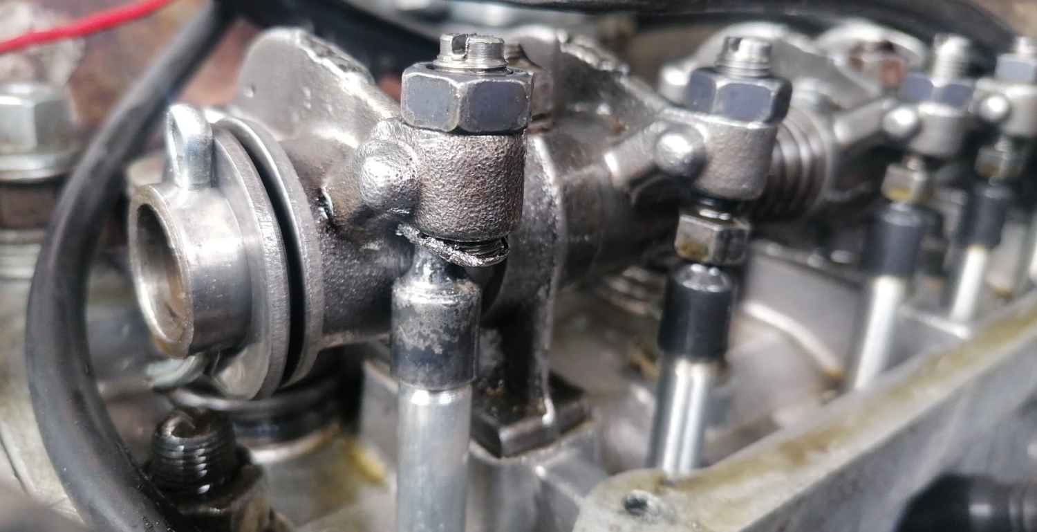 Parinsadan kilometrin kohdalla, kun tein ensimmäisiä venttiilinsäätöjä ja kannen jälkikiristyksiä niin silloin huomasin, että ykkösventtiilin kohdalta säätöruuvi on hieman nirhannut venttiilikoppaan. Kannen 4mm laskemisen takia tässä on lyhennetty tietty myös työntötankoja ja tuolloin arvelin ykköstyöntötangon jäänen vain liian pitkäksi joten lyhensin sitä hieman ja sehän tuntui auttavan.