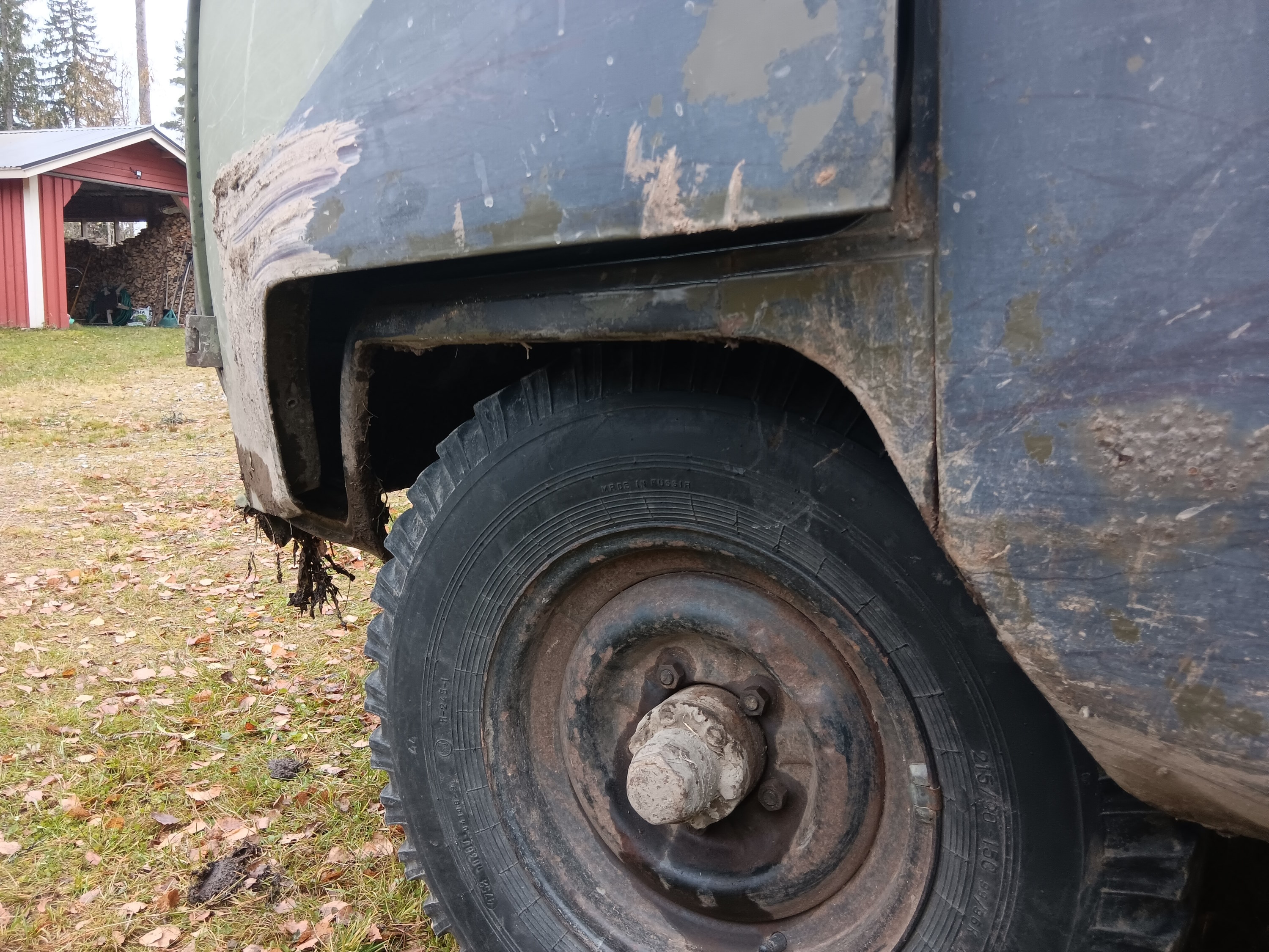 Eipä ole hetkeen tullut kirjoiteltua, Uaz toiminut joten ajellut vain tyytyväisenä. Nyt talvella Uazin omat renkaat oli niin liukkaat että jäi lähes tasamaallakin takaveto päällä jumiin. Nelivetoa kun ei ole suunniteltu kestämään jatkuvaa käyttöä niin oli tehtävä renkaanvaihtoliikkeitä mikäli mieli talvikeleillä ajella. Sain sitten Ladaritarilta testiin Uazin vanteilla olevat mutta jonkin verran pienemmät nastarenkaat ja niillähän pitoa oli tosi hyvin. Uazin rengaskoko kun on 215/90R15 niin pitäisi vannekokoa kasvattaa tuumalla mikäli haluaisi oikean kokoisia renkaita helposti ja halvalla saavan.