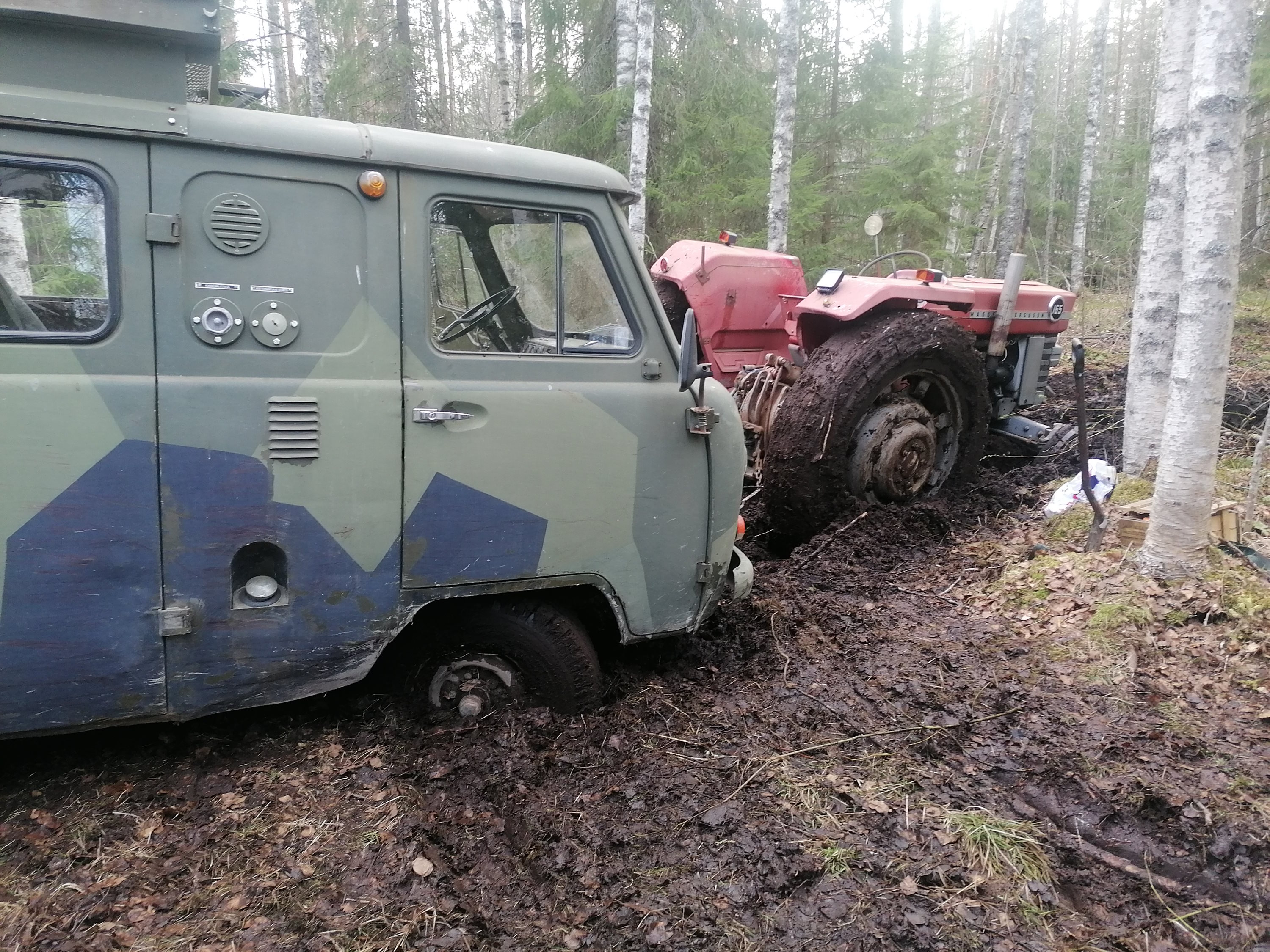 Seuraavana päivänä sitten traktorin kanssa hakemaan ensin Niva pois ja sitten kiskomaan Uaz irti.