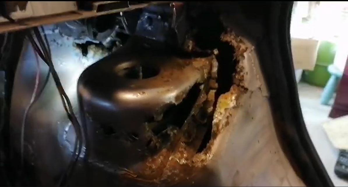 Piti ruostelaikut poistaa ja fiksata auto yksiväriseksi. Takapäästä löytyi tälläinen yllätys (ehdotuksia mitä voisi tehdä):