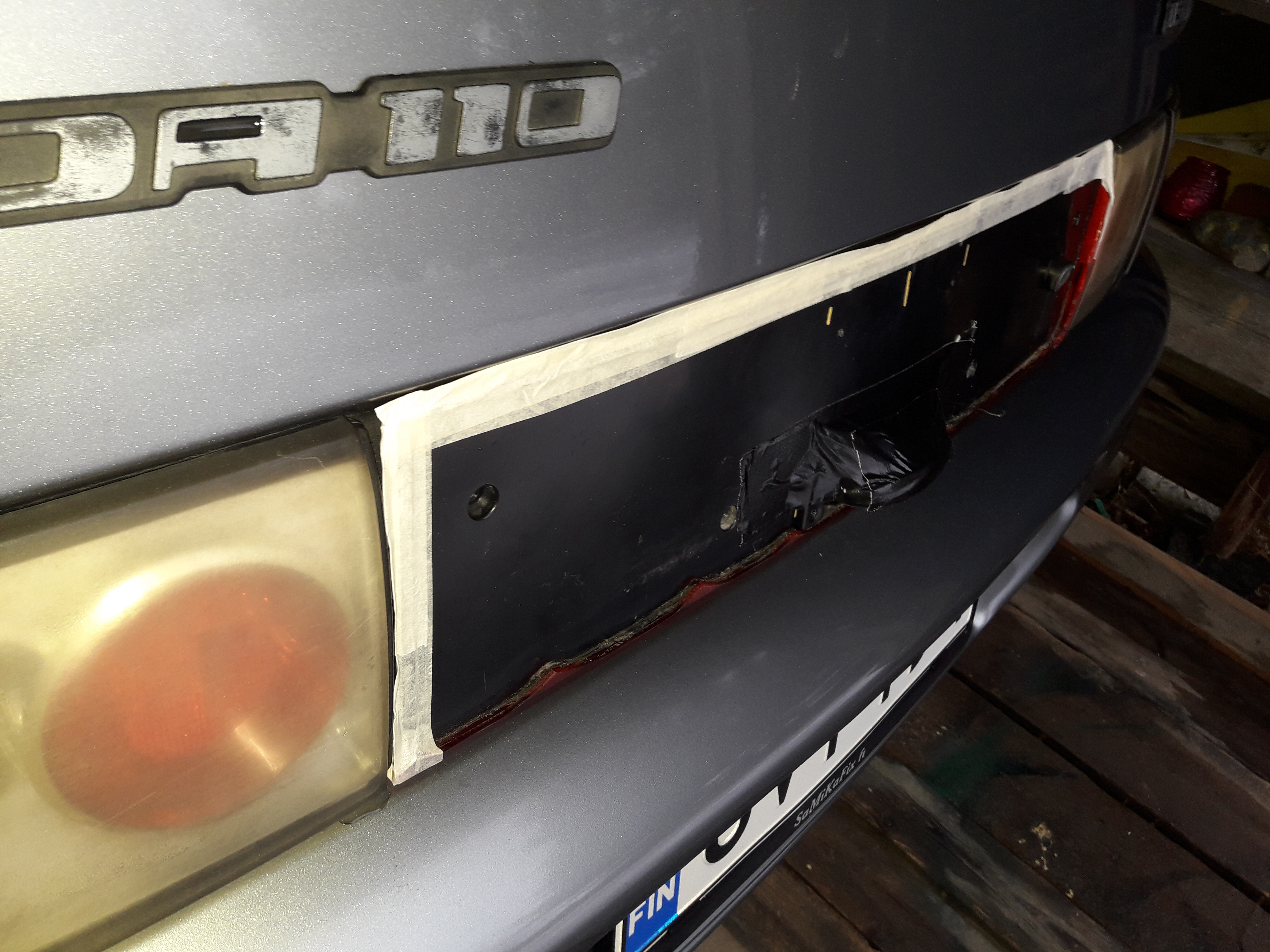 Innoissani tulin ajattelemattomuuttani rikkoneeksi sen heijastimen reunankin, vaikka se olisi ilman muuta ollut kiva tuossa. Tein sitten uuden muodon reunukselle maalarinteipillä, jonka kovetin polyesterihartsilla sekä lasikuitumatolla. Kaipaa toki hiontaa sekin!