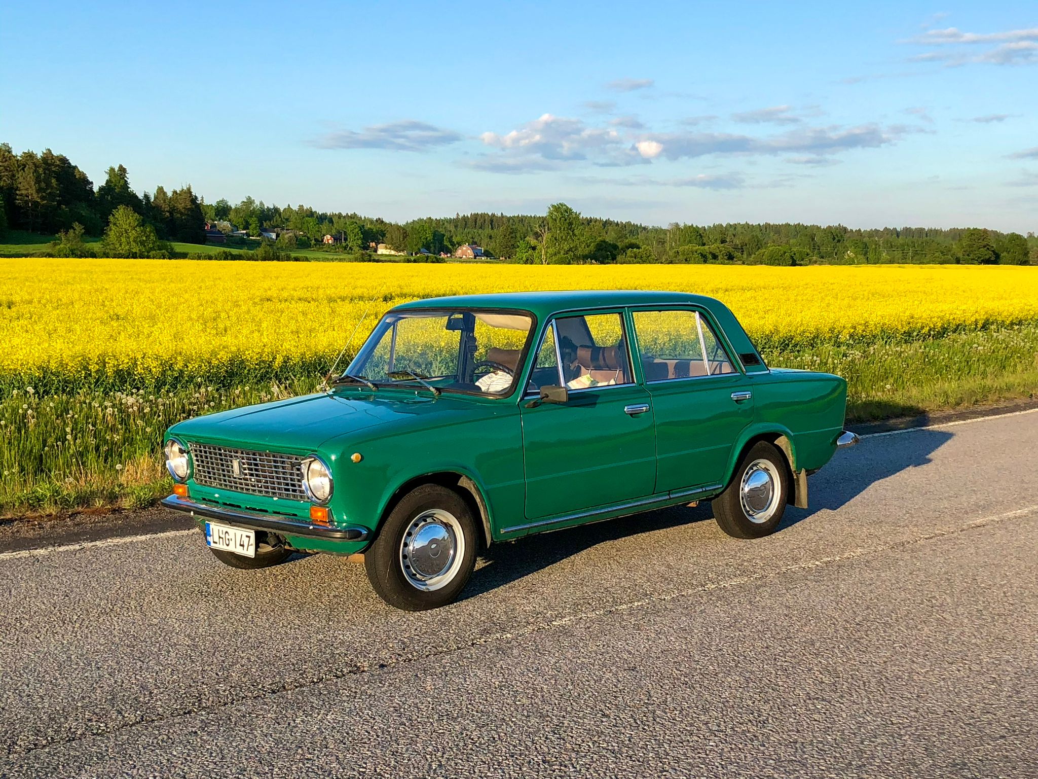 tuli ostettua kaukainen haave joka juontaa -70 luvun loppupuolelle.siskolla oli fiat 124 vihreä,joka oli niin sympaattisen näköinen että tykästyin siihen oikein huolella.päätin että joskus tuollasen hommaan,muttakun 124 on niin vähän kuin kanalla hampaita,niin lada se on oltava ja värinå just se vihreä.nyt sellaisen ostin nettiautosta jolla se ex omistajalla ollut 20 vuotta,eikä ajettu kuin kesäisin,pientä osapuutetta/korjattavaa on,mutta pikkuhilaa,ne kaipaamani penkinpäälliset löytyi huutonetistä huimaan 2e hintaam+postit,olivat olleet hetken ladassa kiinni.joskus.alkuperäiset kilvet tilasin noitten eu kilpien tilalle,tulee ne vaasan läänin kilvet vor-xxx tämä lada on näyttäytynyt kerhon tapahtumissa,kuvia en löytänyt galleriasta.ylempi kuva ostoksesta ja alempi siskon 124