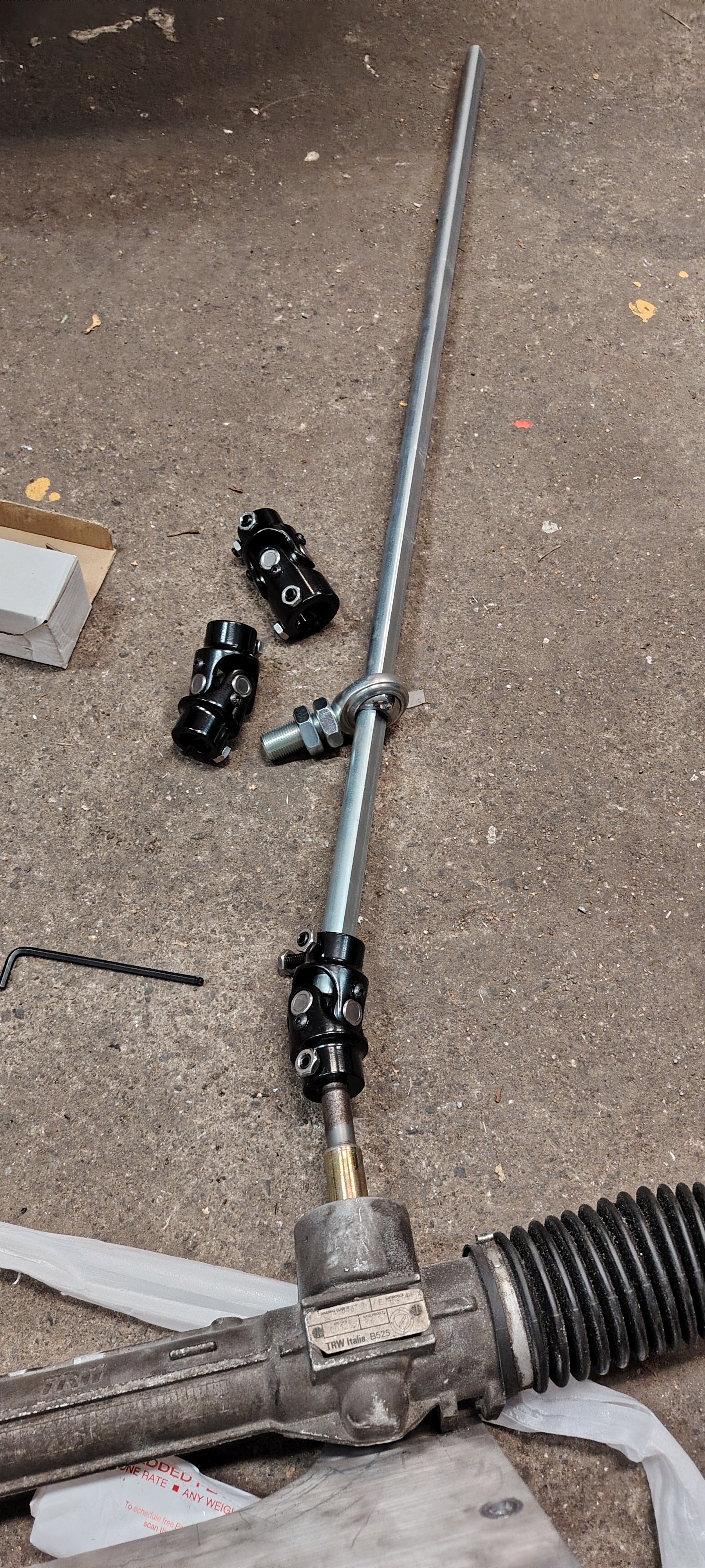 Leveys on aika hyvä ja samoin karkeesti mittailtuna iskun pituus. Tuo on sähkötehosteisen ohjauspylvään tanko jossa vajaa 3 kierrosta. Pitää ensin kokeilla miten jäykkä tulee ilman tehostusta...