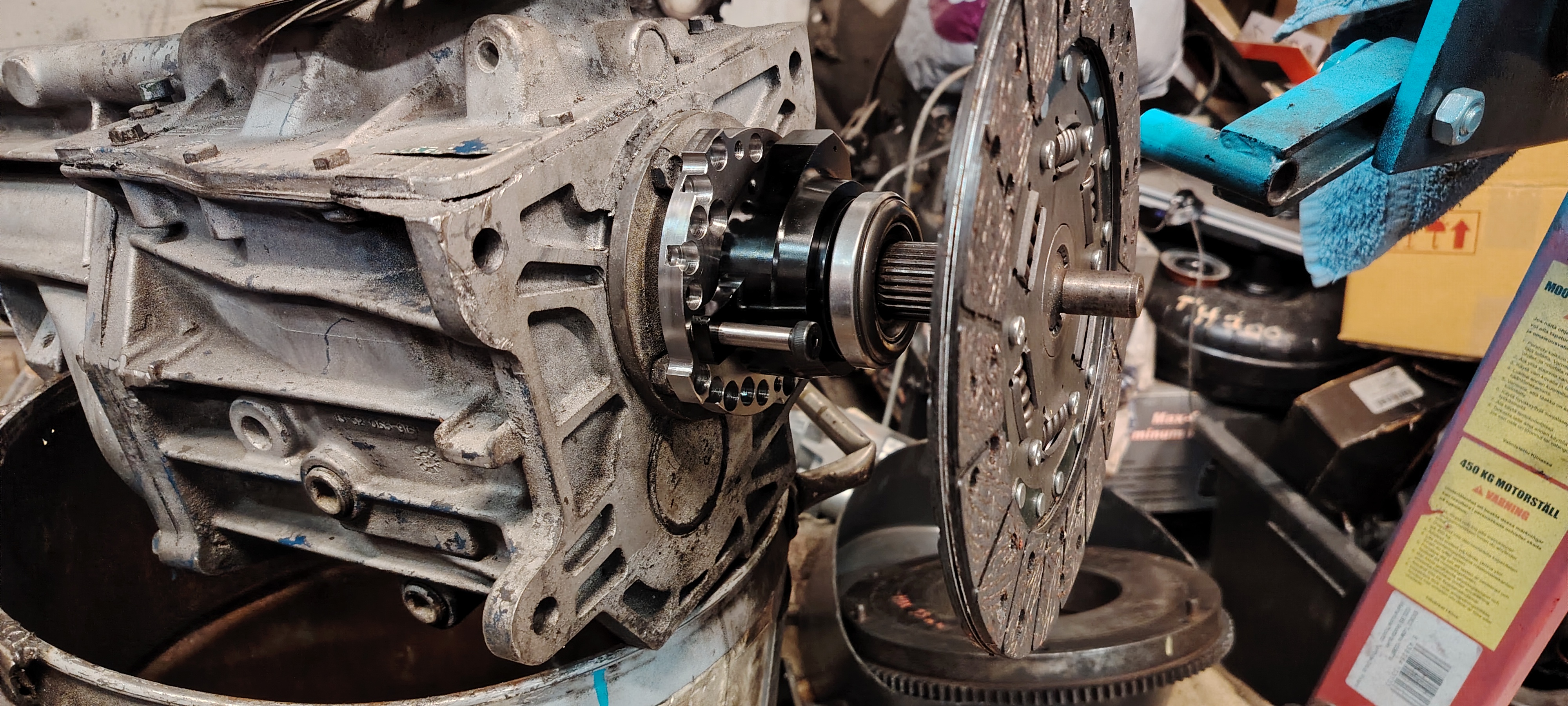 Tuollasen yleismallin säädettävän kytkinsylinterin tilasin ruotsista, käy suoraan orkkis kytkinpikarin päälle. Tein vaan kierteet kiinnityspulteille. Samasta paikasta tilasin 240mm kytkinlevyn ja kierreholkit hammastankoon, että saa ladan raidepäät sovitettua fiatin hammastankoon.
