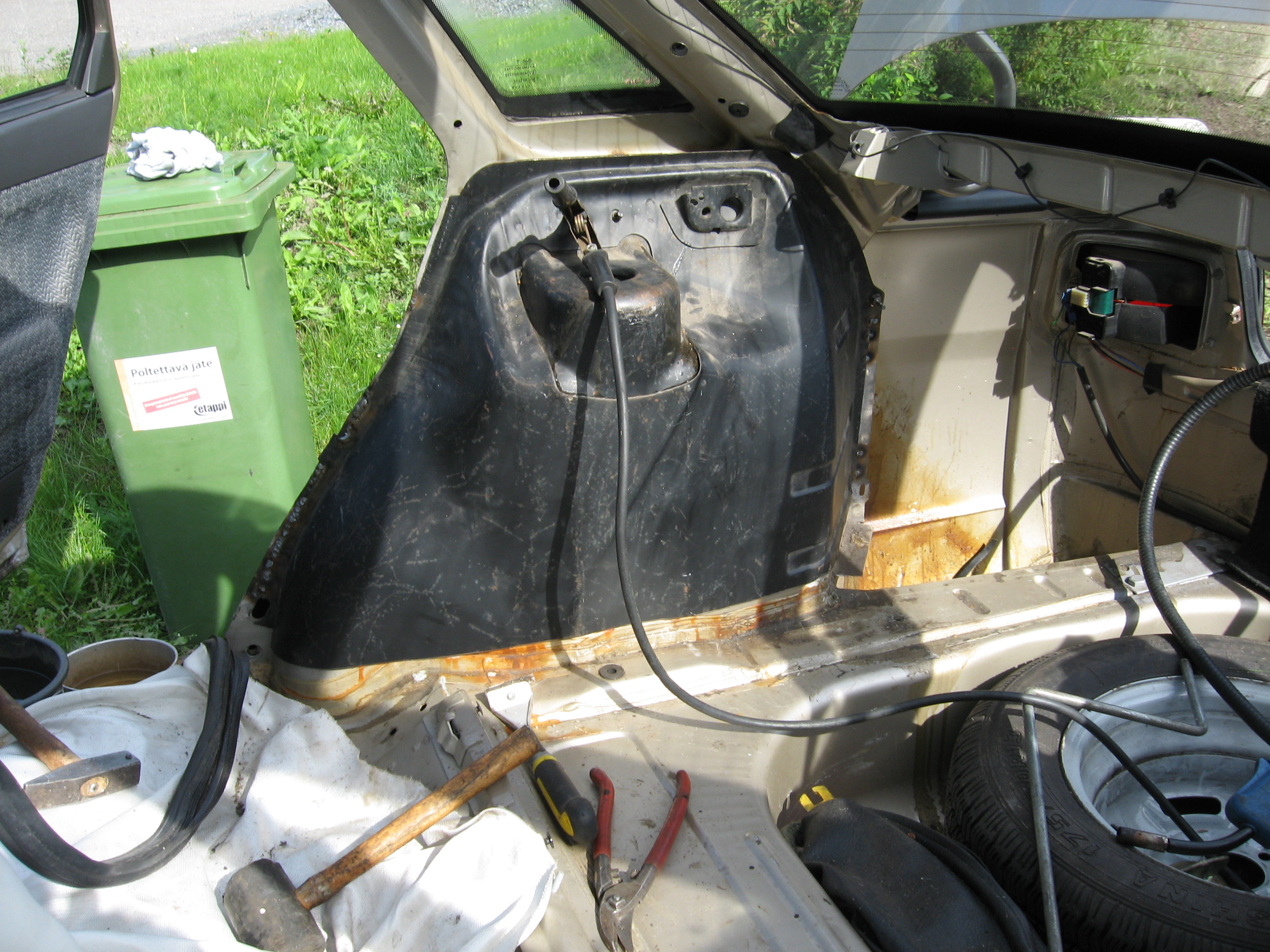 Tänään ajellessa tuli omasta farmarista vasemman takaiskarin pää kontin puolelle kurkkimaan.