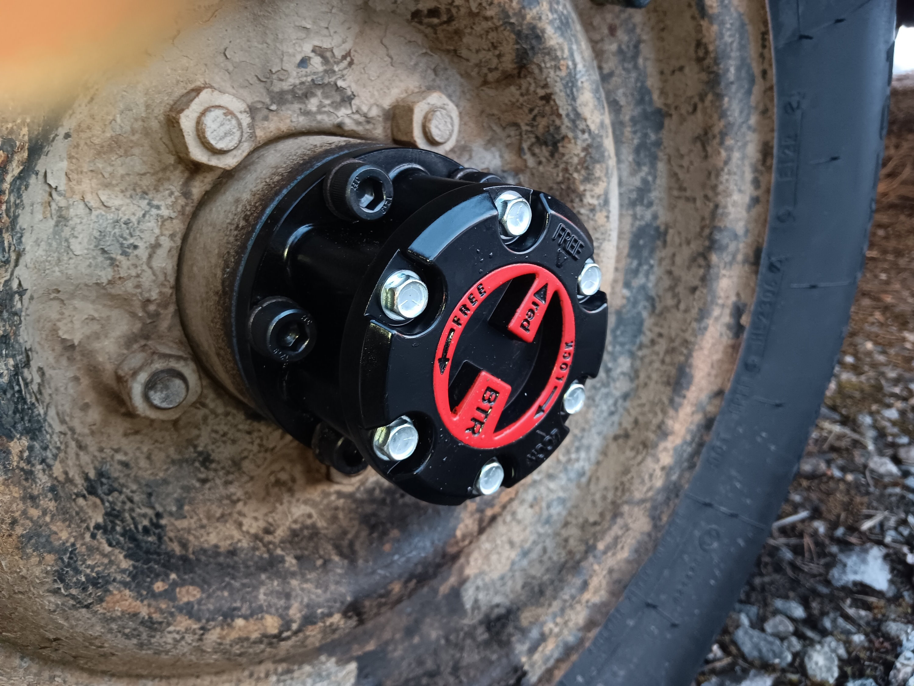 Sitten tuli asennettua paikalleen pika napalukot että saa sormin käännettyä auki ja kiinni. Orkkiksissa täytyy työkaluilla näprätä ja olen odottanut sitä tilannetta, kun liikennevaloihin tai johonkin vastaavaan jää sutimaan takavetopäällä niin nyt saa vähän nopeammin nelivedon päälle. Tai sitten innostuu ajamaan johonkin suohon niin nyt saa käsikopelolla napalukot kiinni vaikka olisi akselia myöten upoksissa. Näissä vaan on kuulemma huonojakin jotkut mutta nämä oli kalliit, joten pakko olla siis hyvätkin, vai eikös se niin mene.. Joka tapauksessa ei nämä niin kestäviä ole kuin orkkikset että fiksua olisi jättää orkkispalikka autoon jemmaan, jos kesken offailun hajoaa.