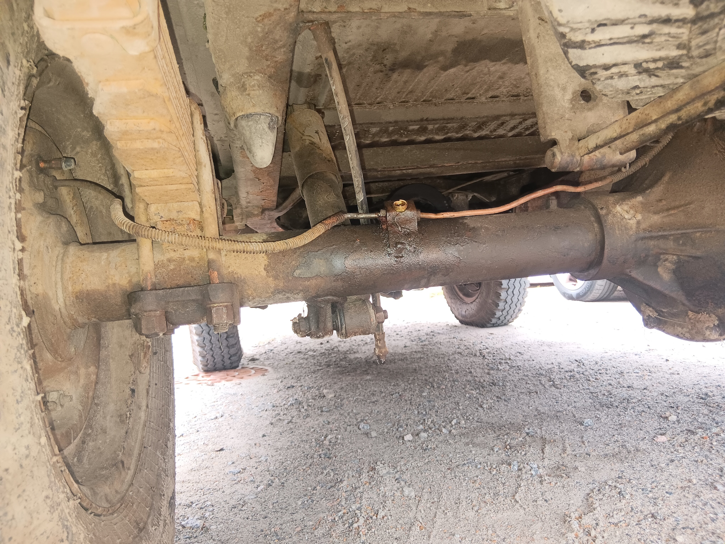Vähän epäilytti leimansaannin kanssa kun ensimmäisenä käytin jarrurummut auki ja kauhukseni huomasin että etujarruissa on hädintuskin kitkapintaa enää jäljellä ja kitkapintakin tuntui siltä että on irtoamassa. Tiedossahan se kyllä oli kun viimeksi jo oli pinta lähellä loppua ja viimeaikoina on tosiaan tullut ajettua melkoisen paljon. Taka-akselin T-haarasta oli hikoillut puoli säiliöllistä jarrunestettä mutta vuoto asettui kiristämisellä ja varulta ilmasin takajarrut. Käsijarruhan on Uazissa kardaanissa ja se on pitänyt viimeaikoina tosi heikosti, onneksi riitti jarrujen putsaus laatikkoöljystä, kenkien kehintä sekä vaijerin tiukkaus. Kätevää kun ei tarvitse huolehtia jarrun puoltamisesta.
