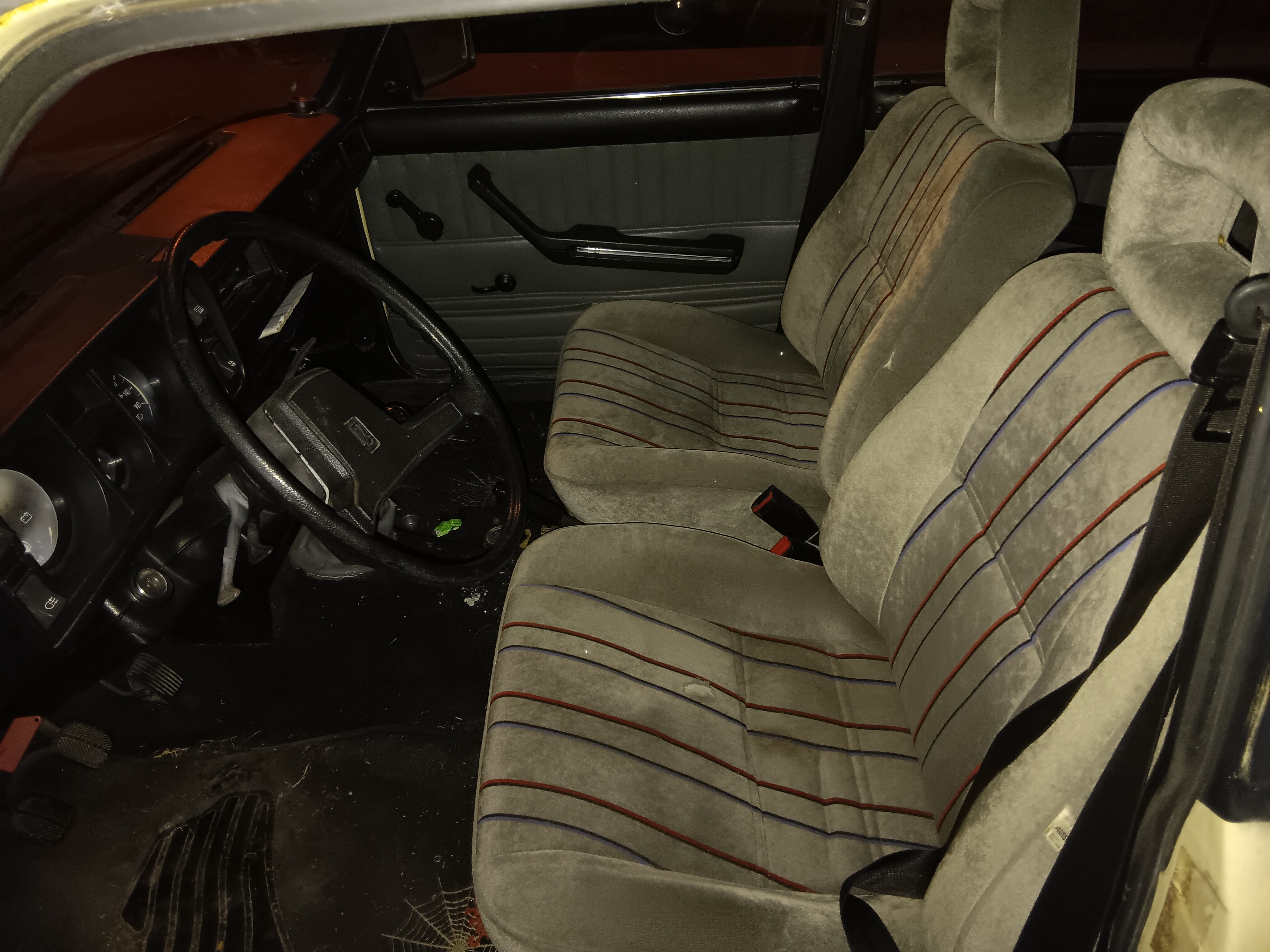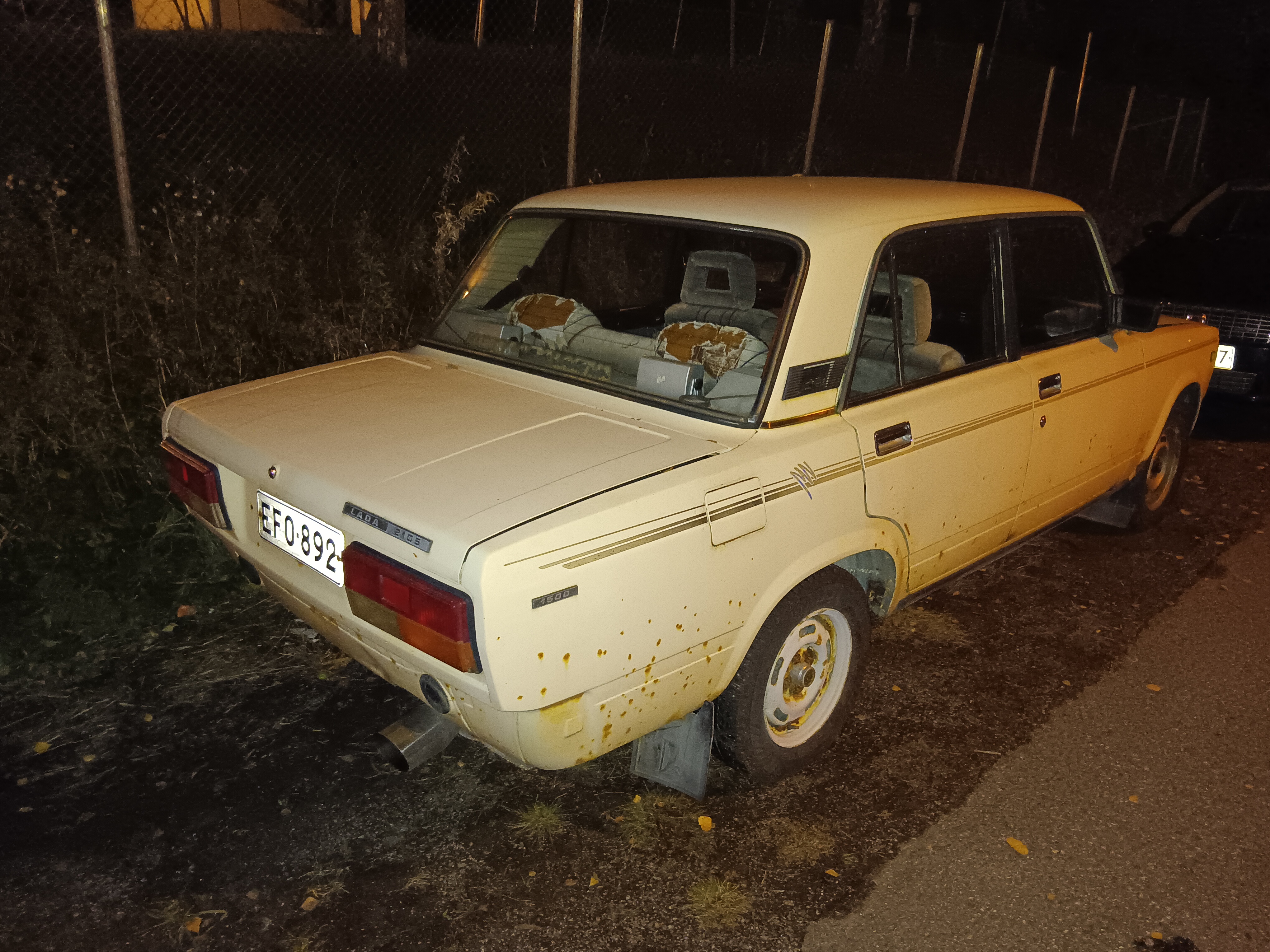 Tällä kertaa osui kohdalleni tällainen erikoinen laite. Aito 1500SL 2105-korilla vuodelta 1991 eli Axtec-järjestelmän alkuajoilta. Kyseinen systeemi on luonnollisesti tässäkin Ladassa ja siitä muistuttaa vihreä lyijyttömästä bensasta mainitseva tarra kojelaudassa. Tämä Lada on lisäksi entinen Tampereen Konelan esittelyauto, sillä mukana oli kyseisen liikkeen rekisterikilpikyltti. Kulkine on rujon näköinen ulkoa päin, mutta tekniikka toimii käyntiongelmia lukuun ottamatta erinomaisesti. Lisäksi sisustus on aika kohtalaisen hyvässä kunnossa lukuun ottamatta koiran repimiä takaniskatukia ja hieman rupsahtanutta kuskin ovipahvia. Takapenkkiin voisi laittaa jonkinlaisen harmaan suojakankaan, mutta se ratketkoon tuonnempana. Kuskin penkissä on pieni repeämä, mutta 32 vuotta vanhassa autossa se ei ole ennenkuulumatonta. Tässähän on maineikas suomalainen La Strada -penkistö. Lisäksi ovipahvit ovat tyylikkään harmaat. Sain mukaan myös puskurit ja vetokoukun. Lisäksi tässä on täysi SL-varustus eli kylkiteipit ja 1500SL-tekstit etulokareissa. Tarroitus on haalistunut, mutta ne olisi tarkoitus teettää uusiksi. Värikontrastina mielestäni tämä on hieno. Vaaleassa beigessä on siniteemaiset tarrat ja tuo 1500SL-teksti on sininen. Lisäksi peilit ovat kunnolliset länsisaksalaiset eli samat mitä seiskoissa on.