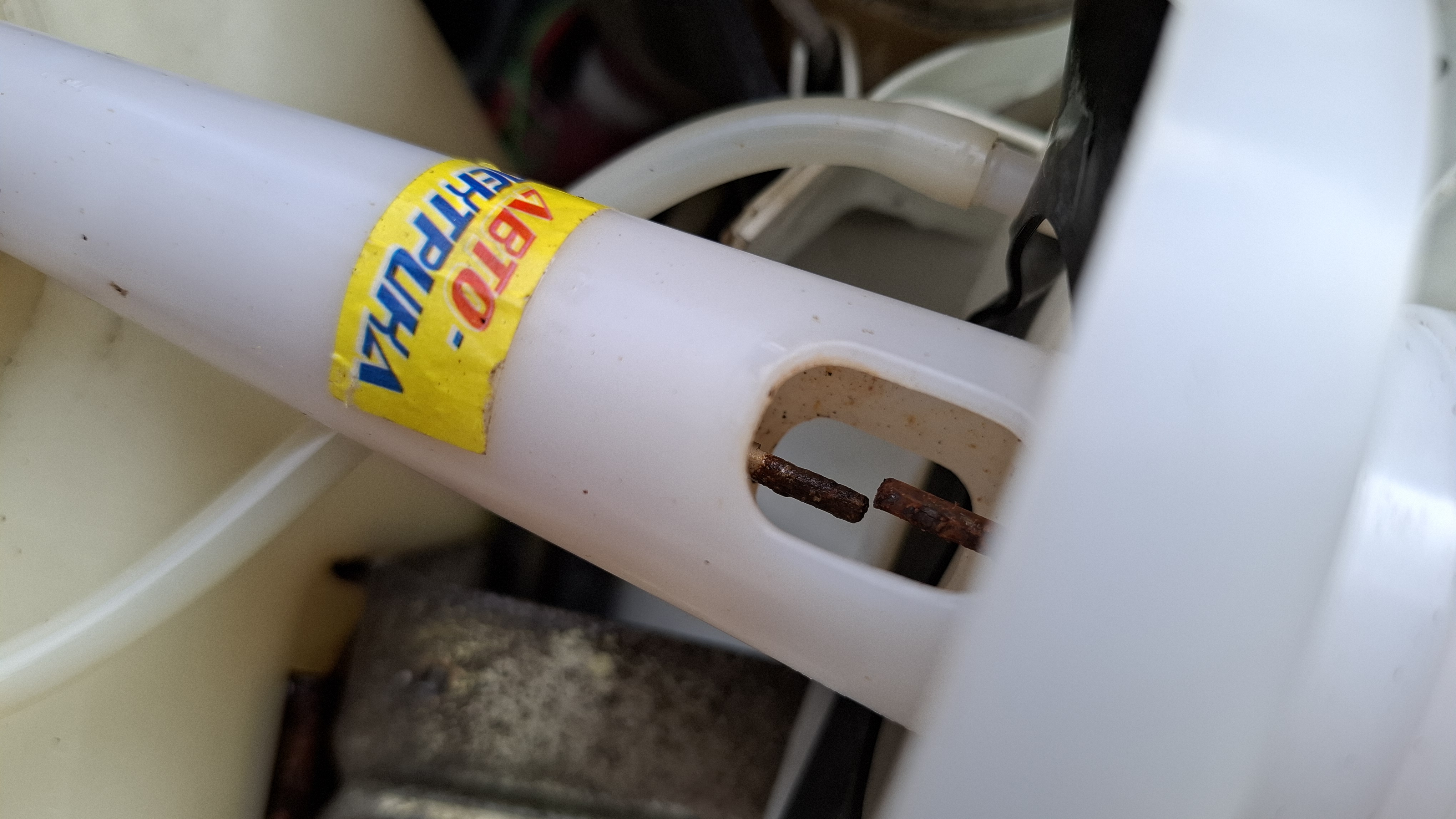 - Oikeassa etuhelmassa ruostepaikka, joka lienee puhki vuoden päästä