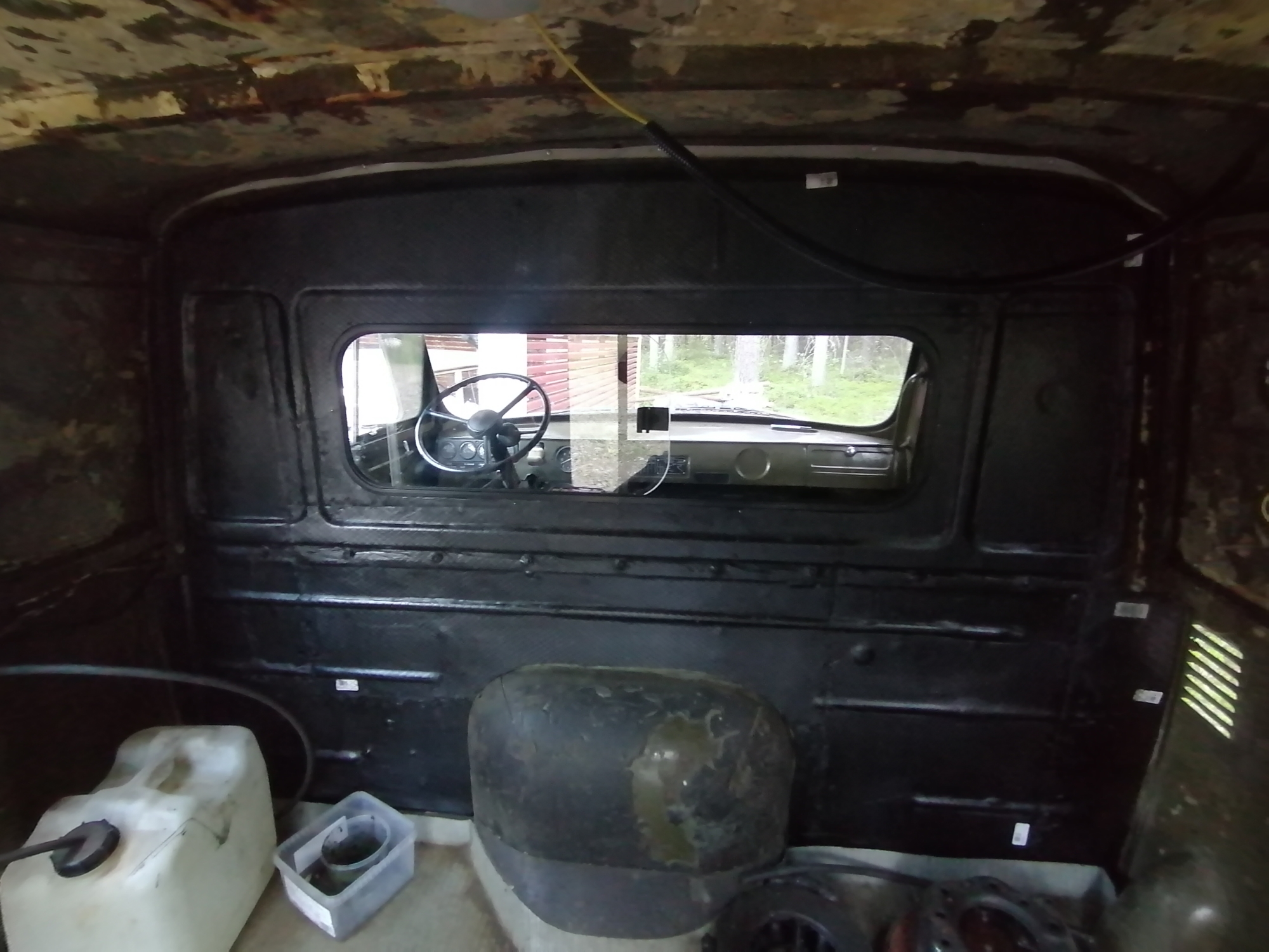 Armeijassa käytetty jotain yleismallisia huoltokirjan pohjia, joihin on sitten liimattu lapuilla merkkikohtaista lisätietoa ja nyt kylmäkäynnistysohje irtosi. Ollut paperikin kallista kun pitänyt karttojen taustapuolia käyttää tähän tarkoitukseen. Pari viikkoa sitten nukuin ensimmäistä kertaa tänä vuonna Uazissa ja samalla tuli testattua tuo retkisänky ja kompurajääkaappikin. Juuri mahtuu tuohon lattialle sängyn levittämään, eli siinä mielessä hyvin osui noiden penkkien sijainti kohdilleen. Pitkään pähkäilin että mistä kuskin jaloille puhaltaa kylmää ilmaa mutta sehän oli sitten niinkin näkyvällä paikalla kuin käsijarrukahvan suojakumin puuttuminen. Nyt on sitten uusi kumi siinä ja taas talvea ajatellen aavistuksen lämpimämpi ajella. Tässä syksyn mittaan kun maasto käy märäksi niin tein hankintoja, eli ostin 4500kg kiinalaisen vinssin. Vähän siinä ja siinä että olisiko pitänyt olla pykälää isompi kahden tonnin painoisen Uazin kiskomiseen mutta alkaa hinnat karkaamaan käsistä, etenkin kun yksi offroadharrastaja vielä sanoi että ota köysiversio vaijerin sijaan. No tämä on vielä asentamatta paikalleen.
