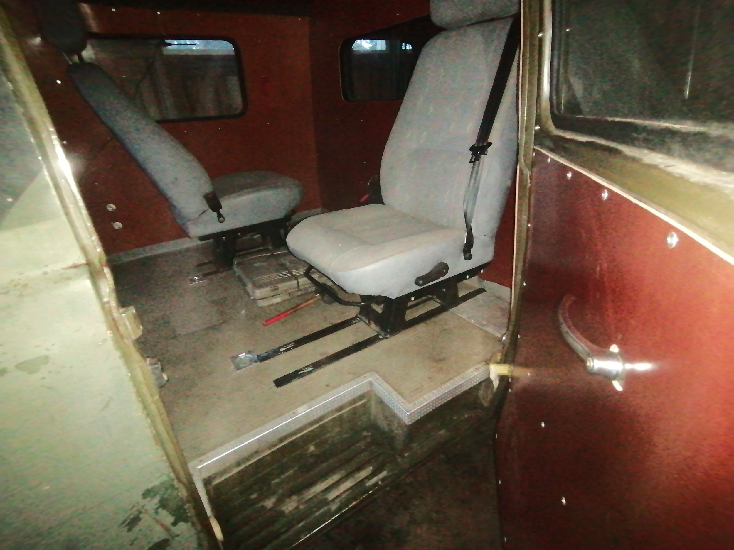 Joskus syksyllä asensin työvalot taakse niin näkee peruutella paremmin. Kojetaulussa olikin merkkivalon ja katkaisimen paikkoja tyhjänä niin tuli niillekin käyttöä. Valot saikin kätevästi kattotelineeseen kiinni ja johtojen läpivientiaukkokin oli jo valmiina ja sähköjohtovalmiuden olin älynnyt vaneroinnin yhteydessä laittaa, niin ei tarvinnut koko auton mitalta sähköjä tehdä. Raitisilmatuuletus-aukothan näissä on valtavan suuret, joten kylmä tulee jos näitä ei saa kiinni. Minulta oli kadonnut näistä nuo jouset mutta Volkkarin käsijarrun palautusjousi oli niin lähelle oikeanlaista että toimii näillä loistavasti. Taisi olla syksyä sekin kun aloin takapenkkien kiinnitystapaa miettimään. Katsastusmies antoi vain ohjeeksi, että penkki kiinni lattian läpi pulttaamalla neljällä M8 pultilla ja pellin molemmin puolin pitää olla 6x7cm kokoiset latat vahvikkeena. No minun penkeissä kun oli se pikakiinnityssysteemi ja sen myös halusin säilyttääkin, niin täytyi sitten rakentaa jonkinlaiset kiskot penkeille. Ehkä olisi jostain löytynyt kiskoja valmiina mutta tein sitten itse.