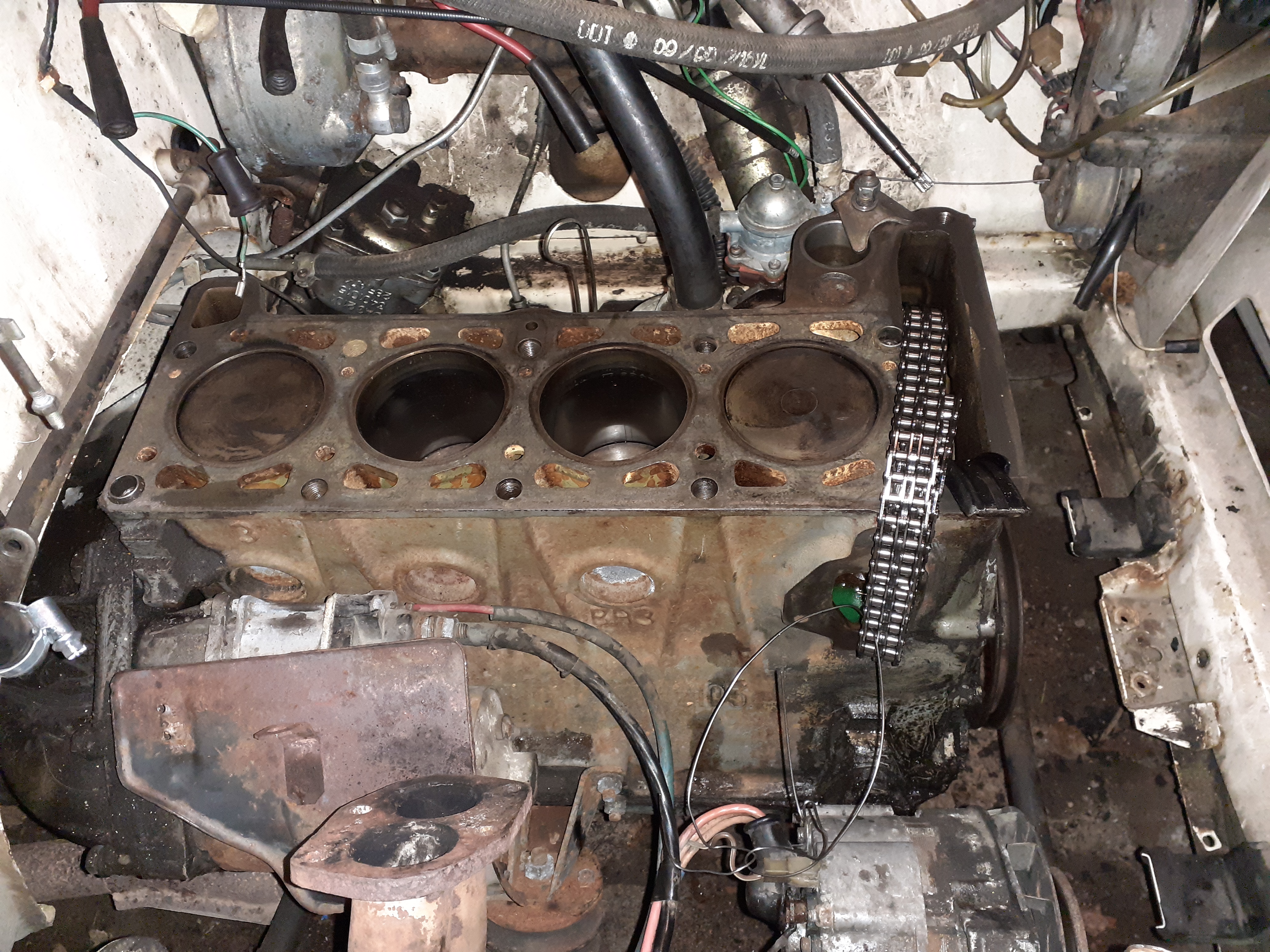 Viimeinen kuukausi mennyt moottorin ja jäähdytysjärjestelmän parissa. Sillä autolla oli ja on ongelmia kuumenemisen kanssa. Ensitöiksi irroitin sylinterikannen, kansipahvin vaihtoa varten. Sieltä sitten paljastui karua näkymää, tarkemmin en kuvaile mutta kaikki oli umpipa###ssa. Taisi olla ensimmäinen kerta kun 30 vuoteen joku vierailee siellä. Samalla myös tutkailin tarkemmin lohkoa ja harmikseni lohko on sisältä ruosteessa. Tämän nähtyäni päätin vielä tarkistaa vesipumpun, irroitin sen ja sekin oli sisältä ruosteessa. No eipä siinä, tilailin sitten uuden kansipahvin, jäähdyttimen (alumiini), uudet letkut, vesipumpun johon uusi hihnapyörä ja kiilahihna, uusi termari sekä tiivisteitä. Huuhtelin vedellä ja huuhteluaineella jonka jälkeen asentelin nämä sekä uudet jäähdytysnesteet mukaan, no eipä tullut mitään muutosta.