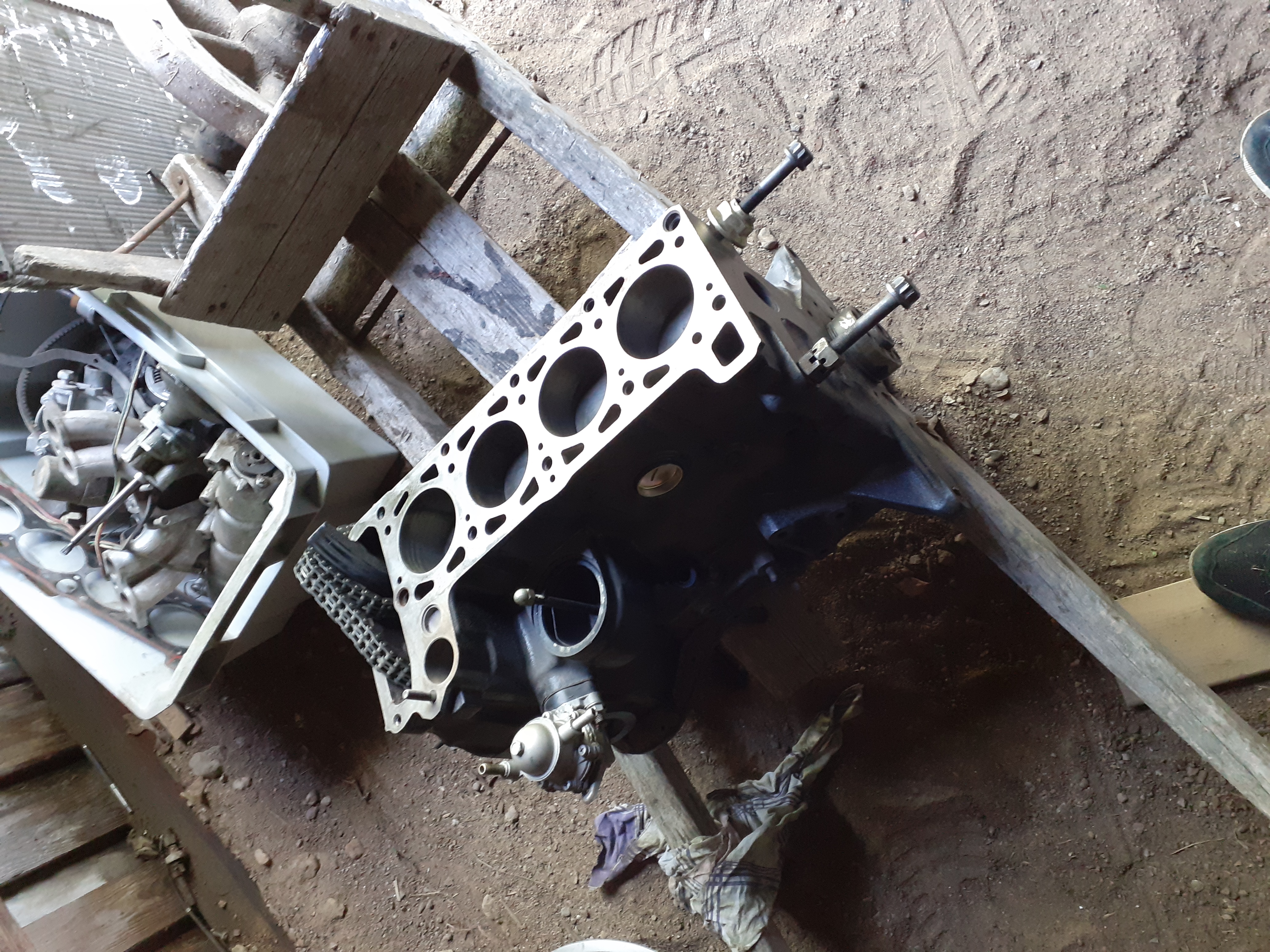 Talvella 2021 laitoin konetta kasaan. Tosin siinä vaiheessa kun olin kiristämässä sylinterin kantta, niin tuli rikottua pienin kannenpultti. Yritin vastakierretapeilla yms. keinoilla saada katkenneen pultin pois. Mutta ei näillä kädentaidoilla saa mitään järkevää aikaiseksi. Joten siihen se sitten jäikin joksikin aikaa seisomaan. Keväällä 2021 otin auton taas työn alle. Vähän aikaa tuota katselin, punnitsin kaikki vaihtoehdot ja päätin että: hommataas uusi lohko. Kun kuitenkin ollaan rakentamassa pomminvarmaa käyttistä, niin ei oikein innostanut tuon vanhan lohkon käyttö. Sekä edelliset omistajat pitäneet niin pa#kaa huolta autosta. Niin pitää sitä välillä helliäkin, hyvillä varaosilla ja huollolla.