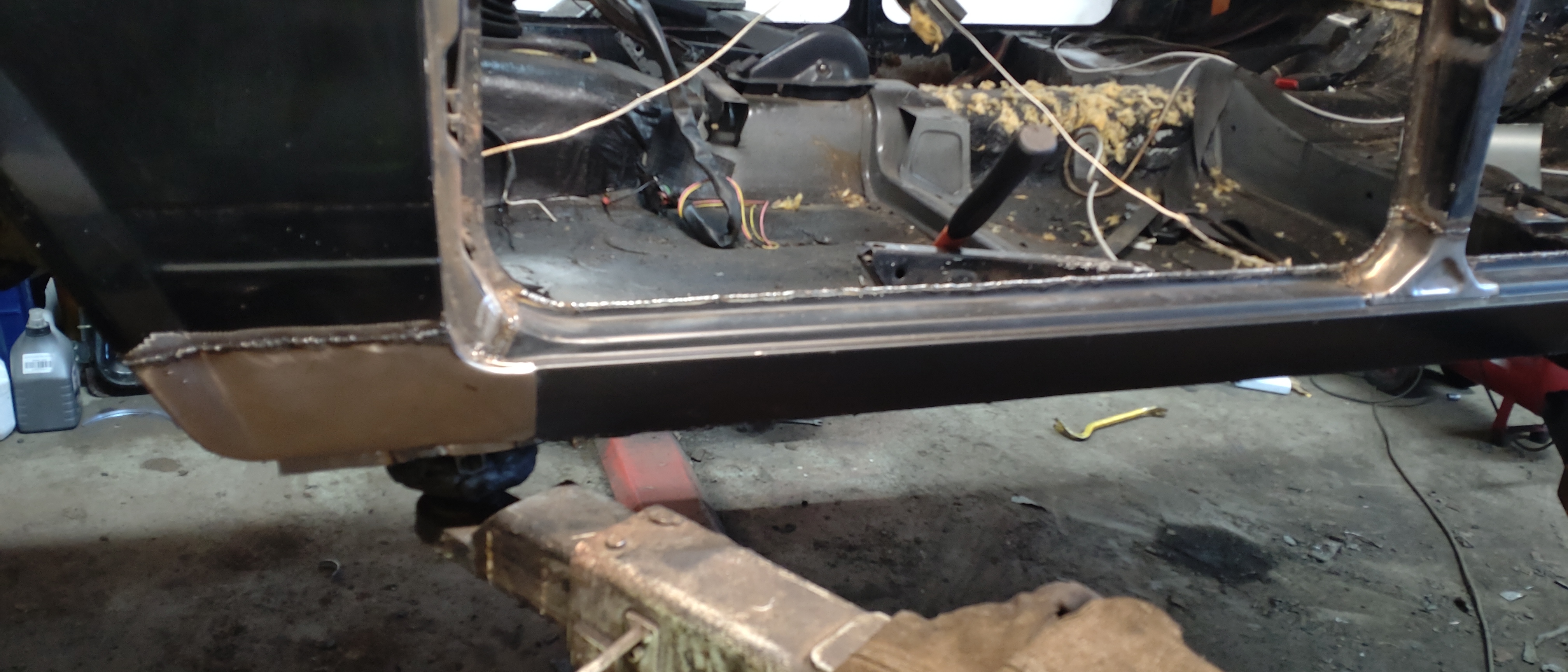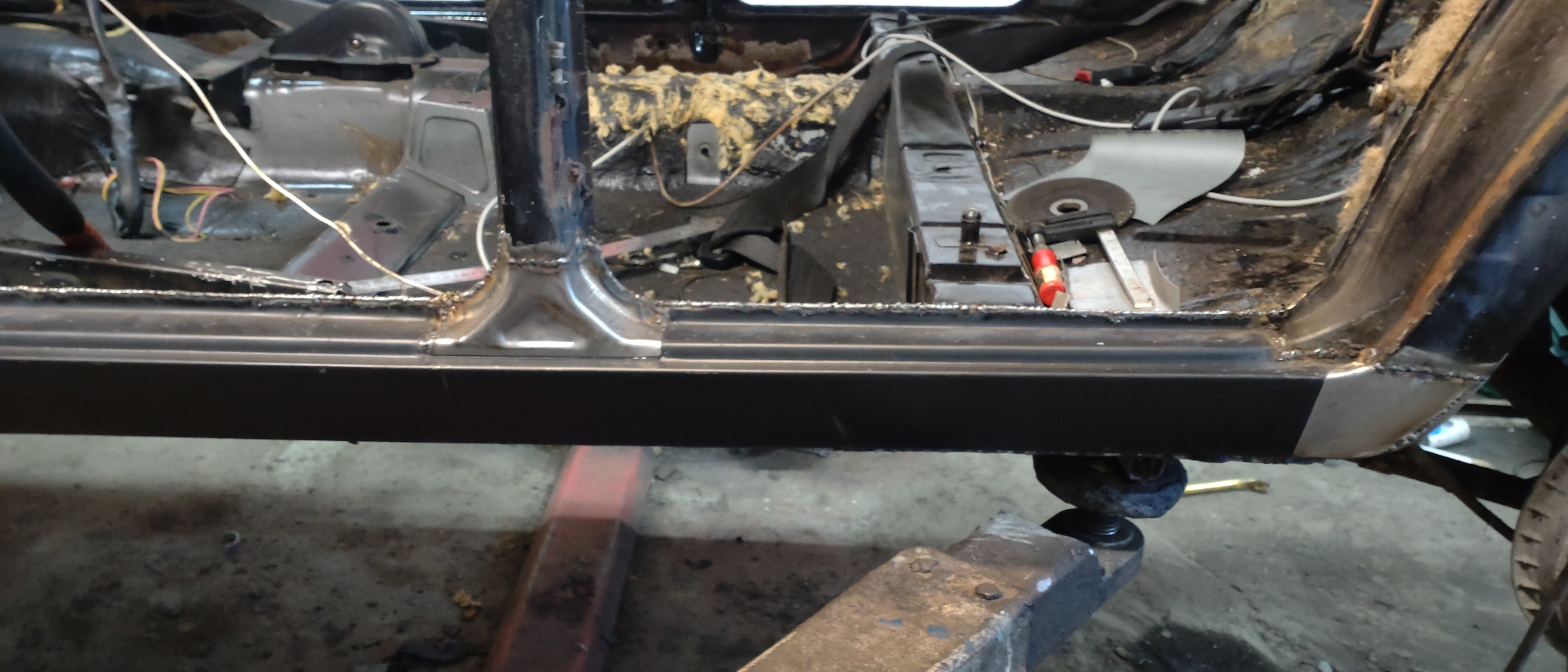 Hitsaussavottaa on jatkunut viisi päivää. Kun vanhoja rakenteita on purettu, paljastuu alta lisää näkkileipää. Yksi paha paikka oli muodostunut oikean takajousen taakse panhard-tangon tornin yläpuolelle. Siinä oli pullistuma, joka vaikutti kovalta aluksi, mutta pienen tökkimisen jälkeen siinä olikin läpimätä kohta. Tämän lisäksi molemmin puolin oli B-pilarin alla helmassa ylemmässä pellissä avoreikä. Tämä jää helposti huomaamatta, ellei kokeile pilarin alta kädellä. Päällisin puolin paikka näyttää ehjältä. Vieläpä oli kuskin puolella takatunkinkorvan kohdalla helmassa reikä tunkinkorvan sisälle päin. Tätä on vaikea nähdä alhaalta, koska pitäisi katsoa korvan sisälle sivusta päin. Kuitenkin paikkoja on korjailtu ja nyt kuskin puolella on uusi helma ja päädyt. Täällä olikin pahin mätäpesäke. Etulokasuojan takana liki helman päätyä on pystypalkki, jonka alaosa oli kadonnut kokonaan. Nämä kaikki piti rakentaa uusiksi. Apukuskin puolella tilanne oli parempi, eikä tuota mainittua palkkia tarvitse korjata. Helmat menevät vaihtoon molemmin puolin.